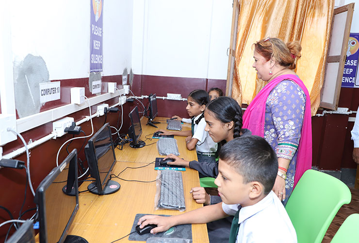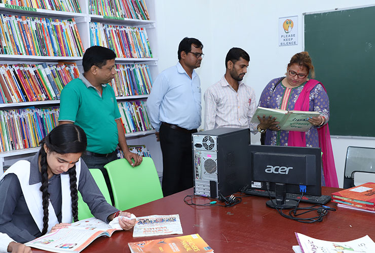 The school library is a hub of knowledge with a wide collection of novels, story books, General Knowledge Science fiction, & books on latest development in science & technology. It encourages reading habits, research, and self-learning among students.