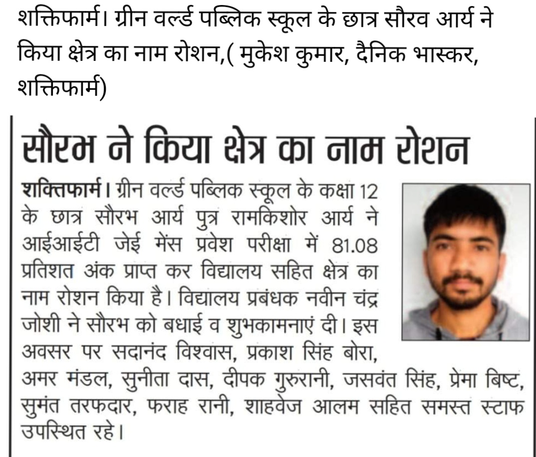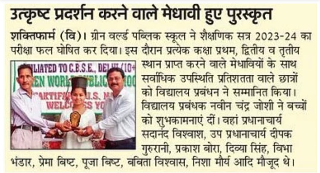 (Run by the Green World Educational Society) C.B.S.E. Affiliation No. 3530350